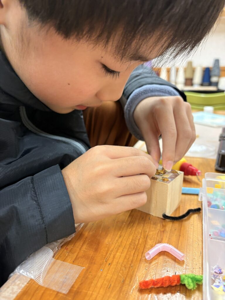 そのブロックの木を使い、2週にわたって制作を行いました。