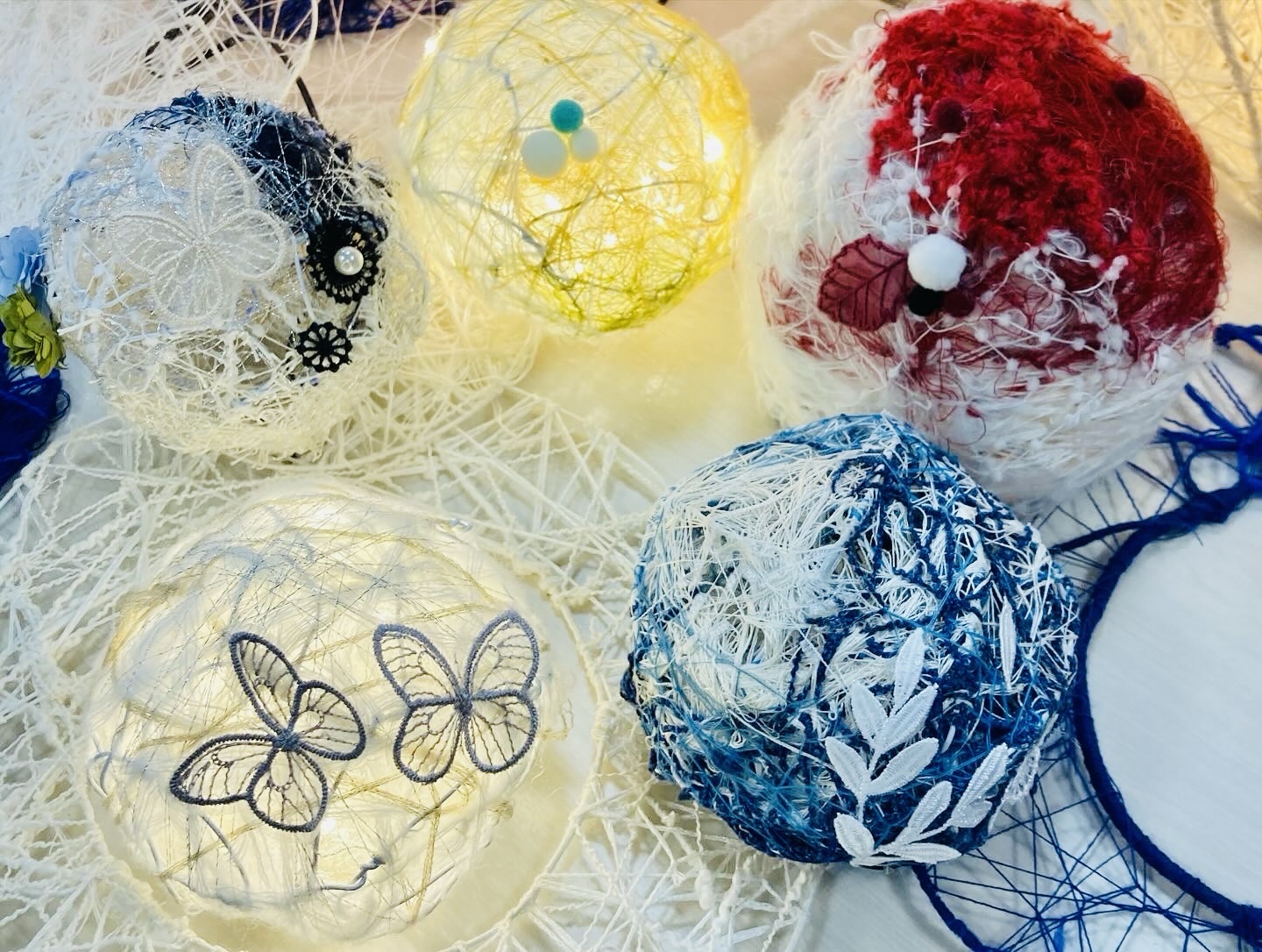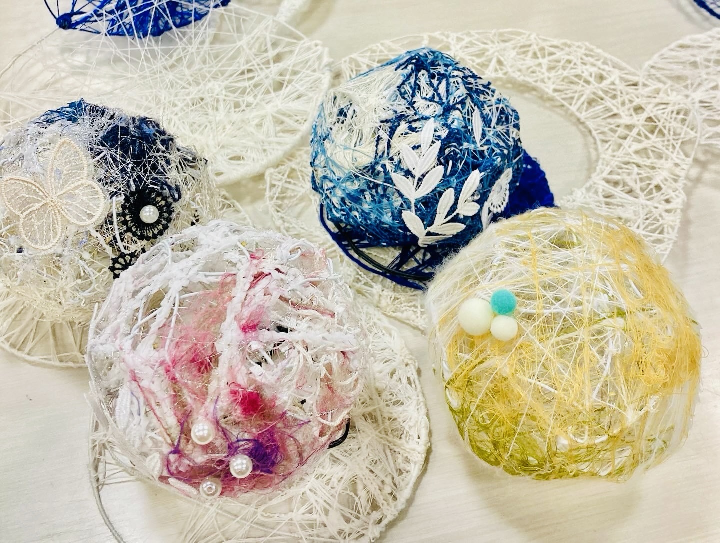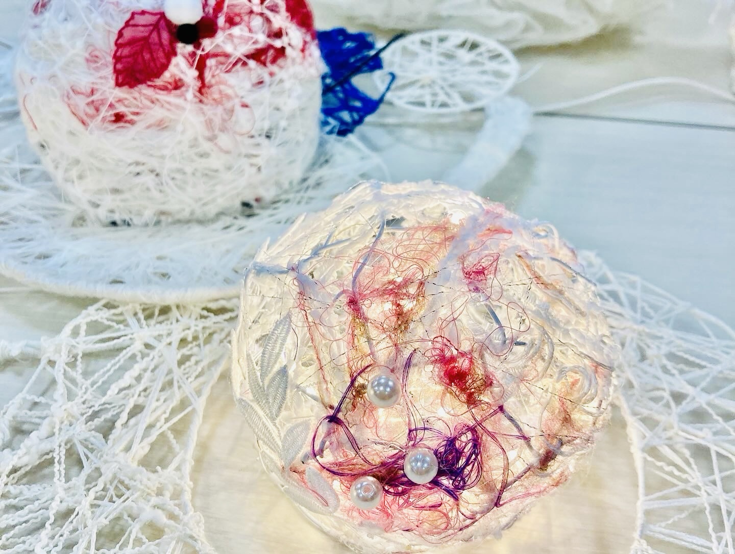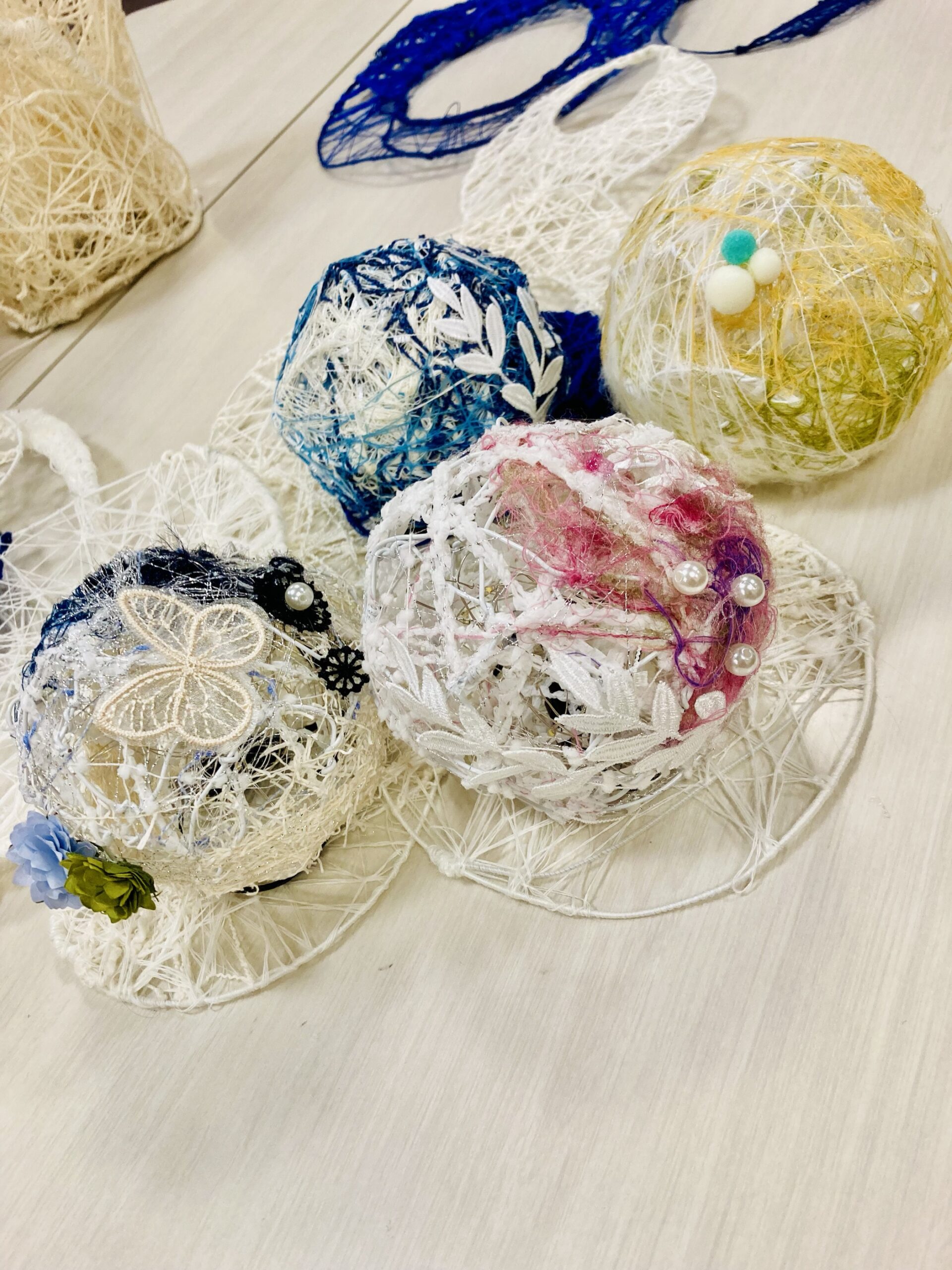 ワークショップの最後にお好みで、パールやレース、ポンポン、リボンなども使って