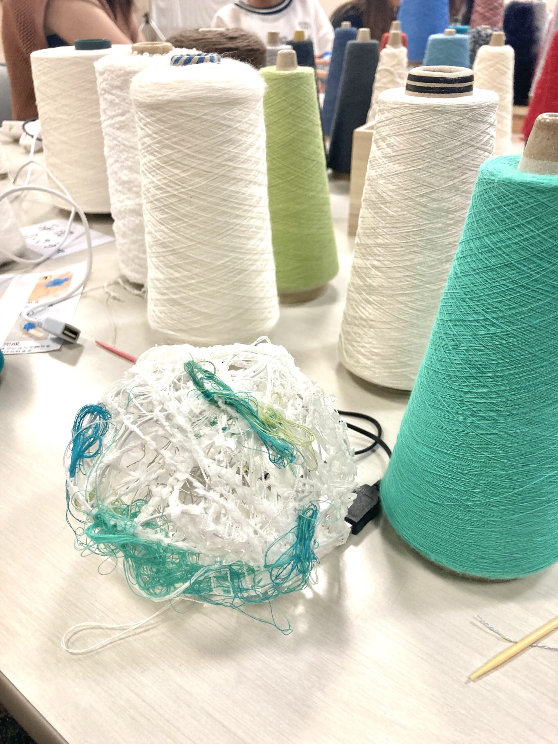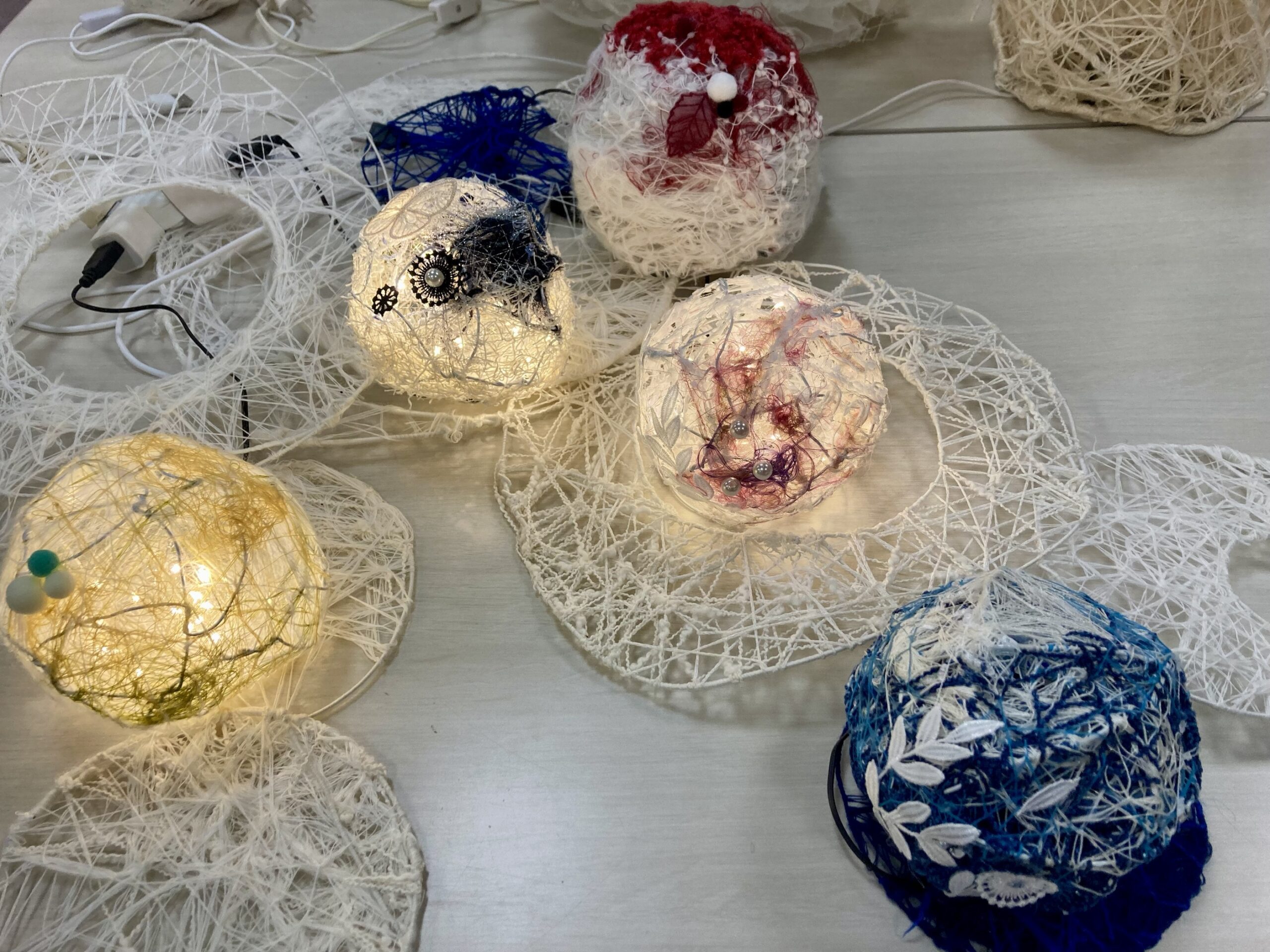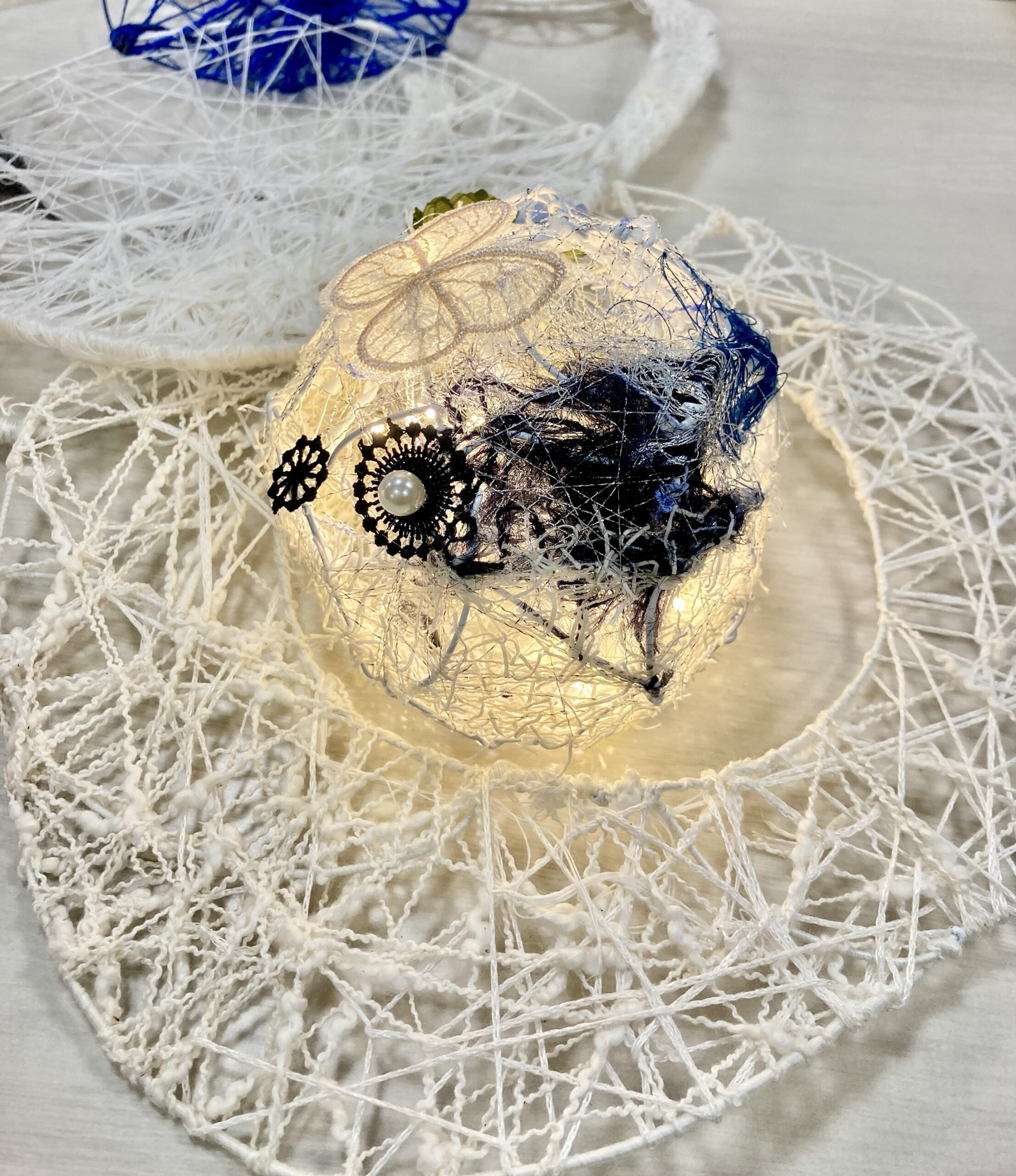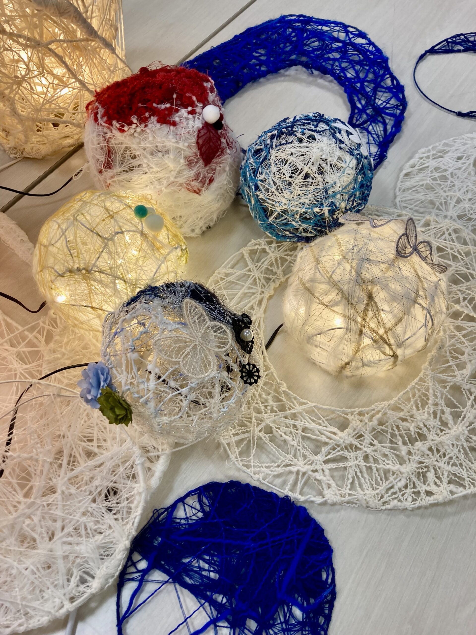 ワークショップの最後にお好みで、パールやレース、ポンポン、リボンなども使って
