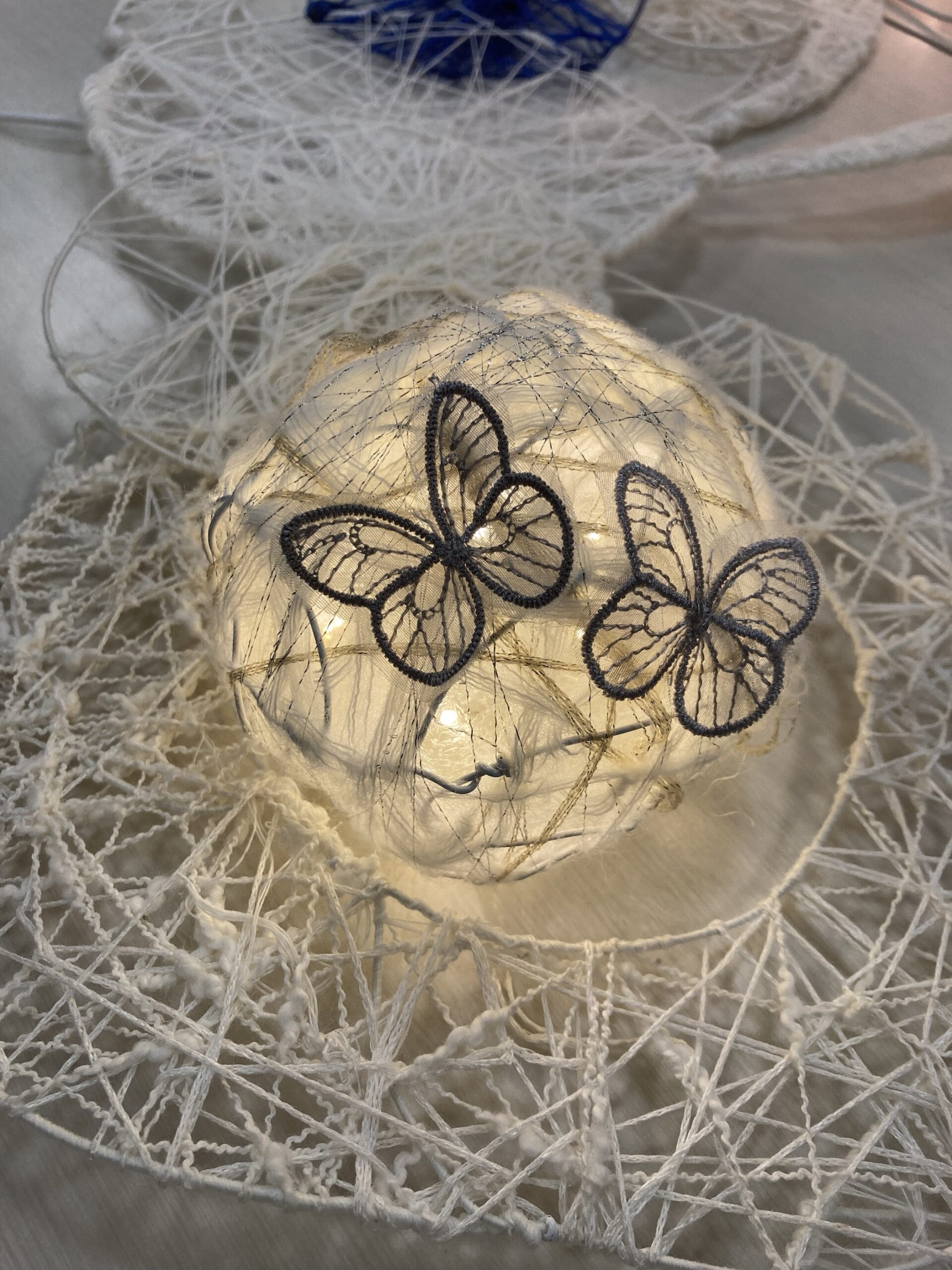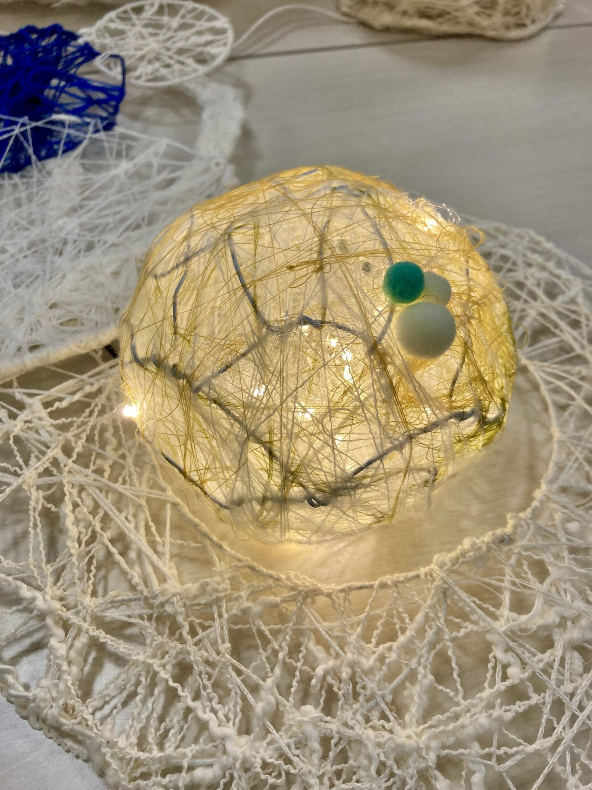2階の入り口に私の作ったせんいの作品があり、
