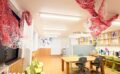 店内は赤、青、白、黄色の壁の店内を意識して空間を作っていきます。