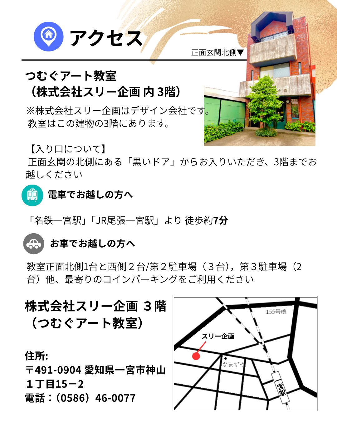 ● 場所:つむぐアート教室(スリー企画 内 3階)