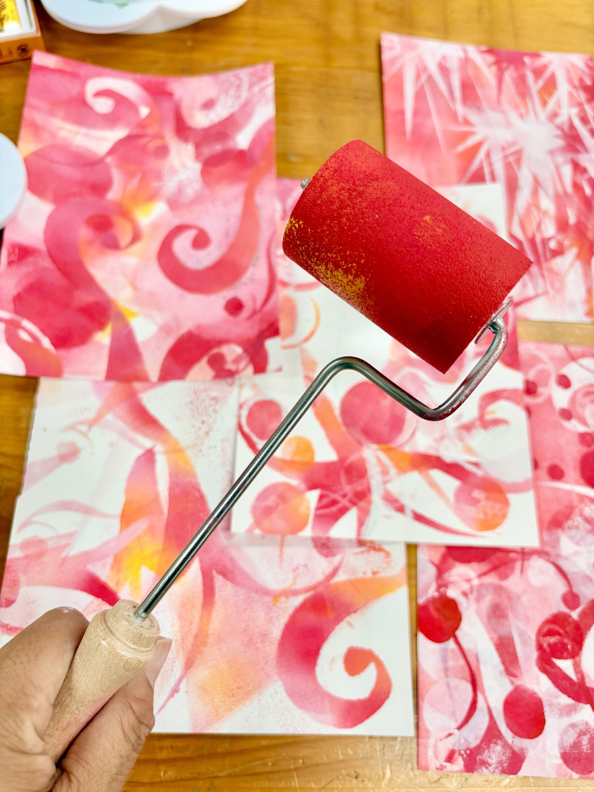 もっと違う方法はないかな?と指で絵の具を押してみたり。