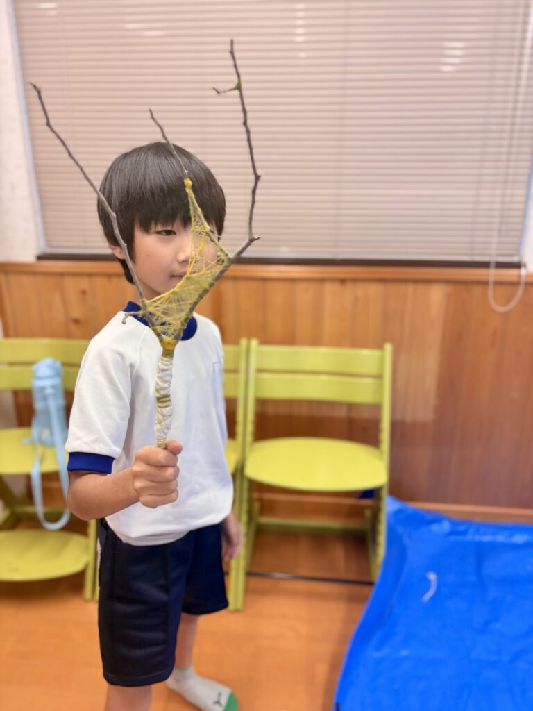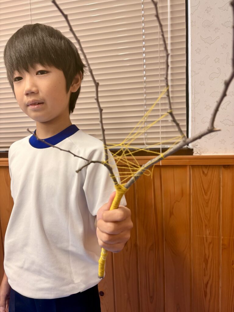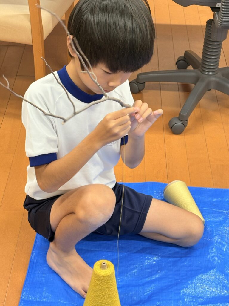 もう一人の子は、公園で拾ってきた木を気に入り、糸を組み合わせながら素敵にアレンジしていました。