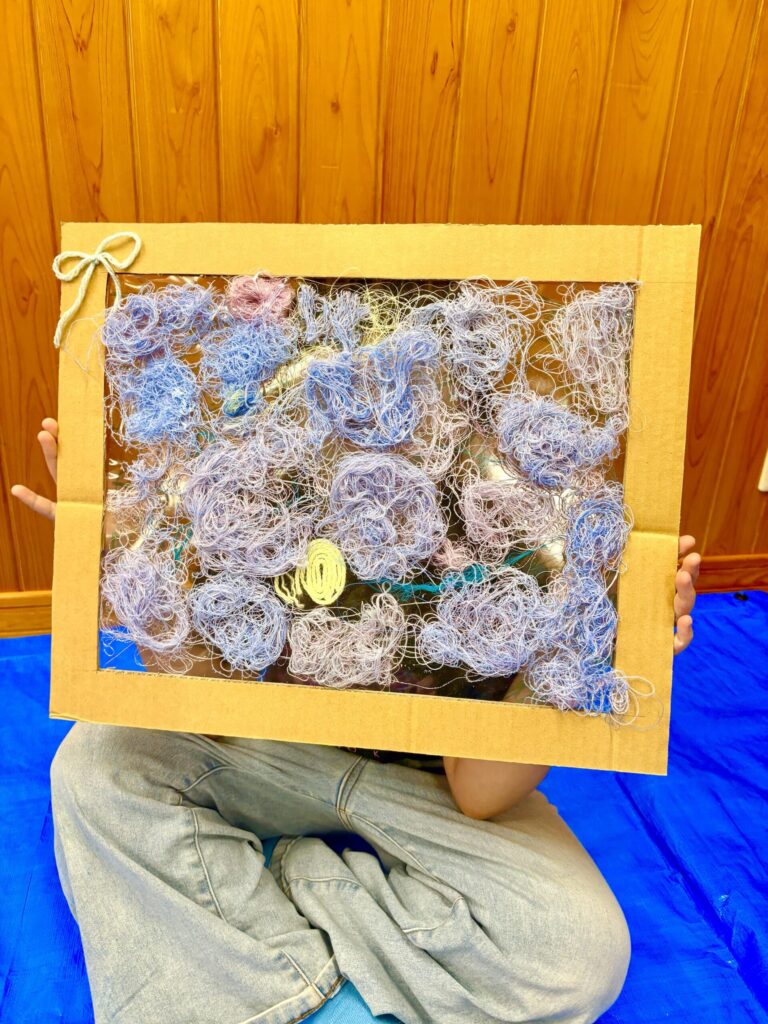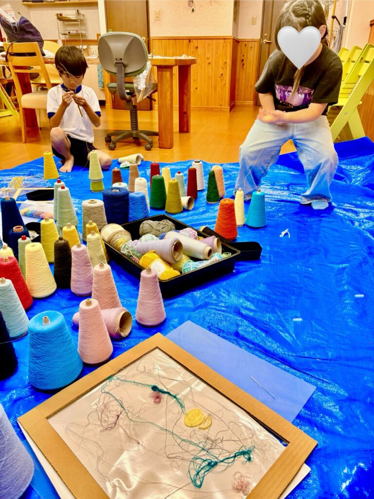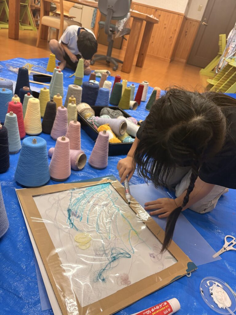 今日の児童クラスのレッスンは「糸」を使った作品づくりでした。