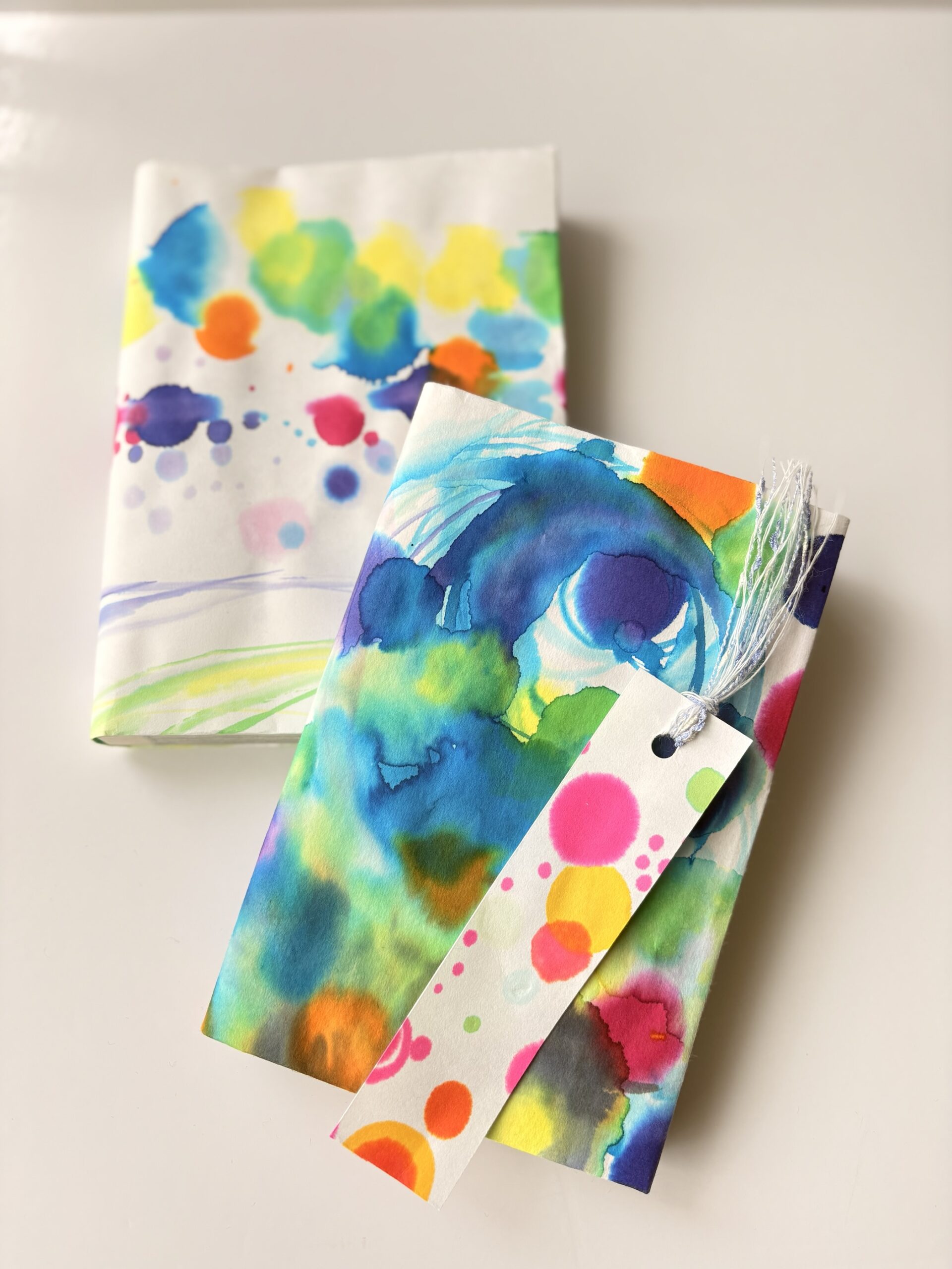 インクを紙に落とすと、思いがけない模様やにじみが生まれて、同じものが二度とできない面白さがあります。